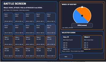 ⭐ Hero vs Villain battler ⭐ Card combat game ⭐ Turn-based RPG ⭐ Indie prototype systems